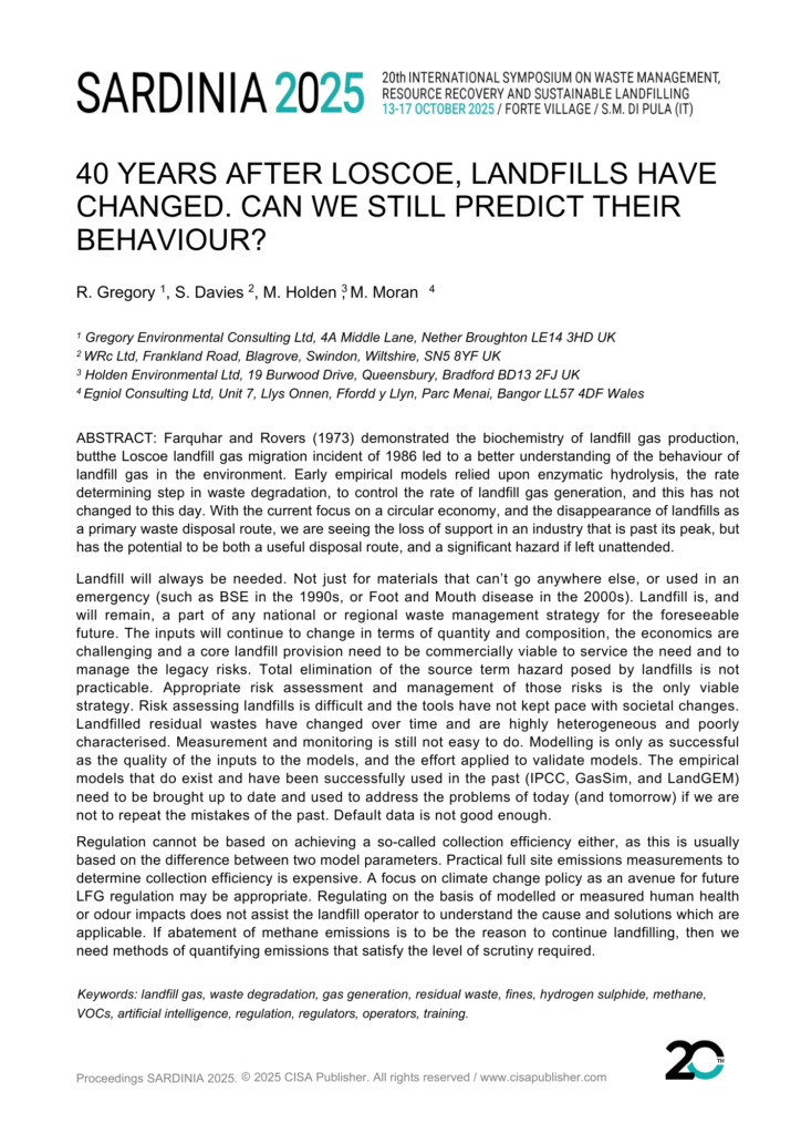 40 Years After Loscoe: Landfills Have Changed. Can We Still Predict Their Behaviour?